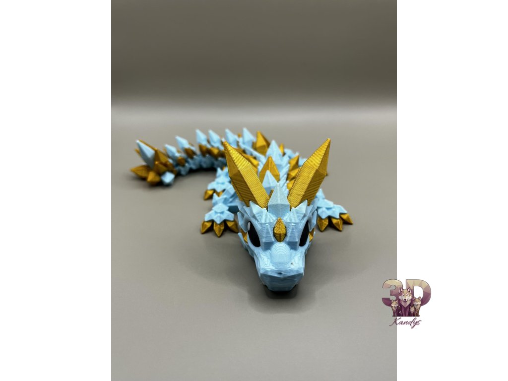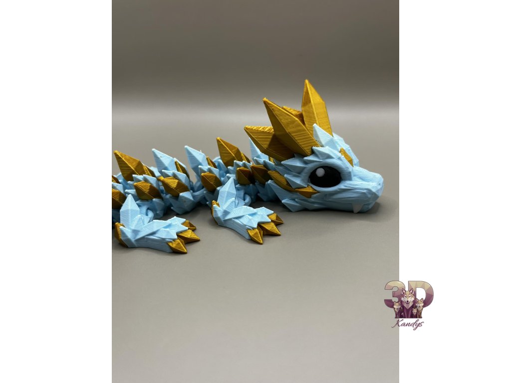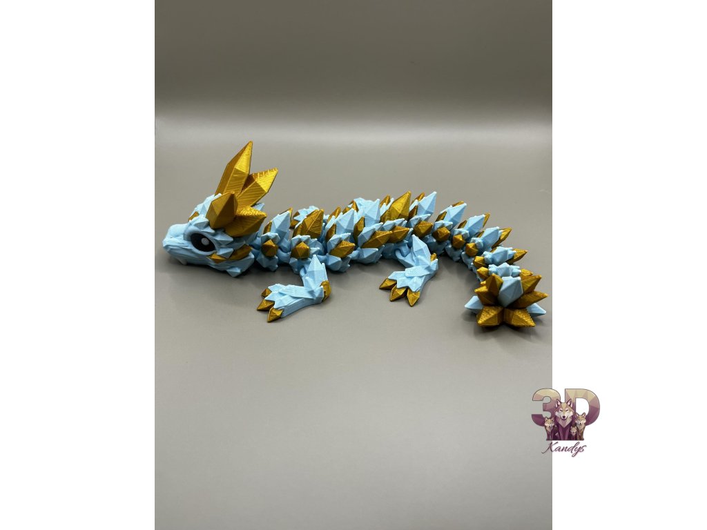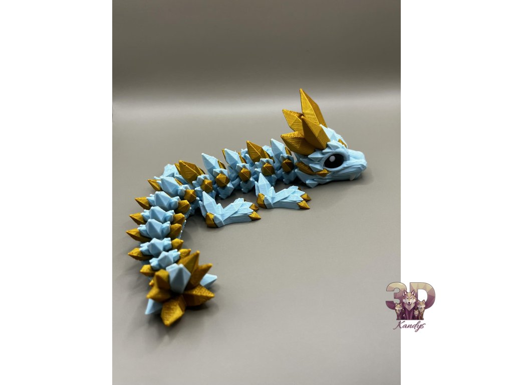Ledově klidný, stylově modrý a s nádechem zlaté – Krystal není jen tak obyčejný dráček. Vypadá, jako by právě přiletěl z polární záře rovnou na tvoji poličku. A věř mi, nevzal to letadlem.