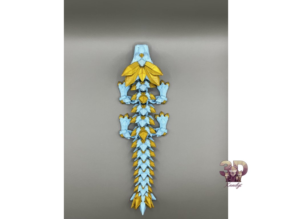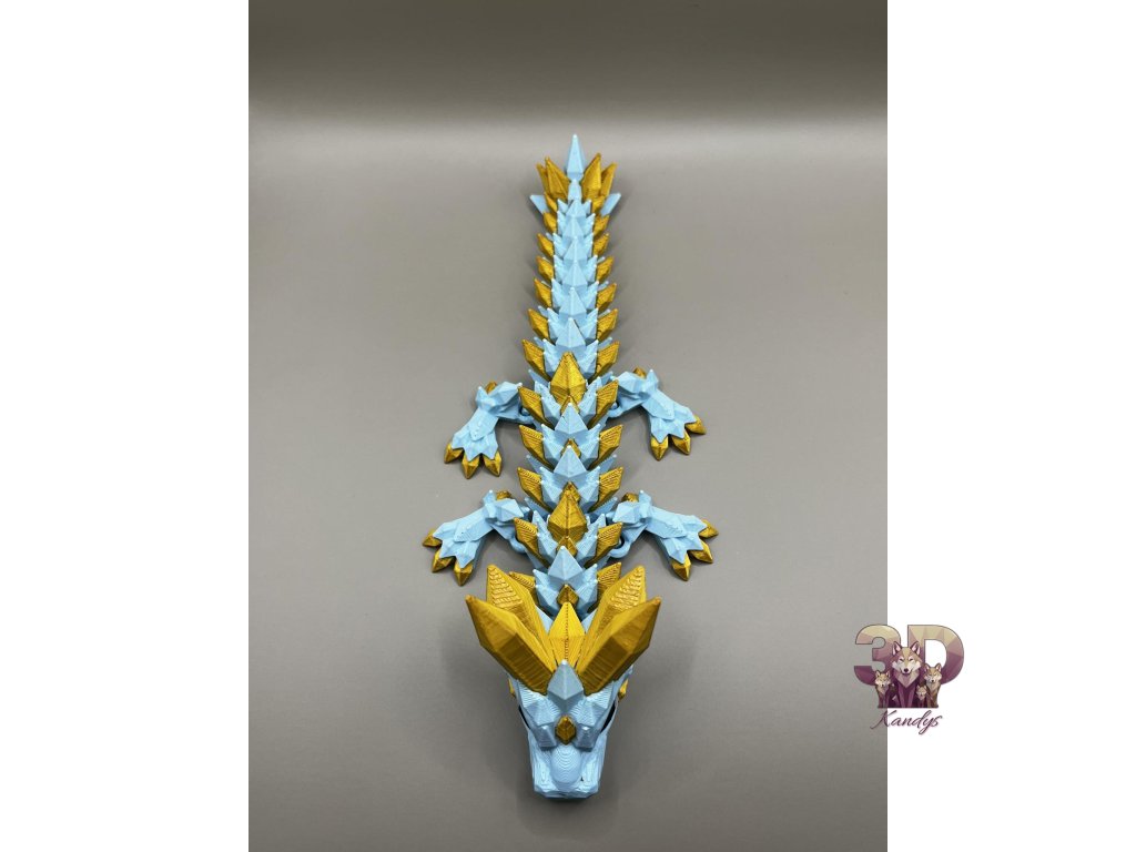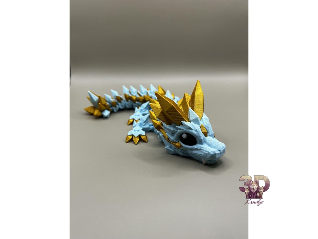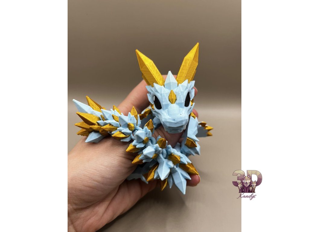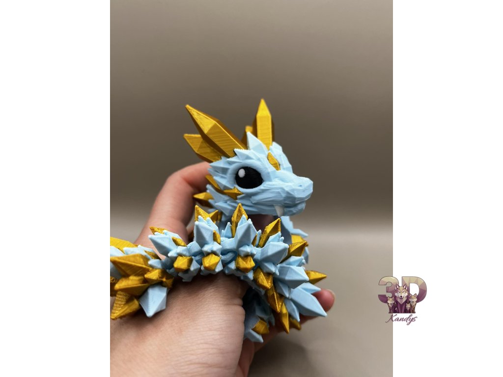 Ledově klidný, stylově modrý a s nádechem zlaté – Krystal není jen tak obyčejný dráček. Vypadá, jako by právě přiletěl z polární záře rovnou na tvoji poličku. A věř mi, nevzal to letadlem.