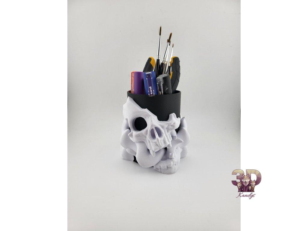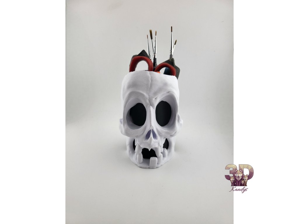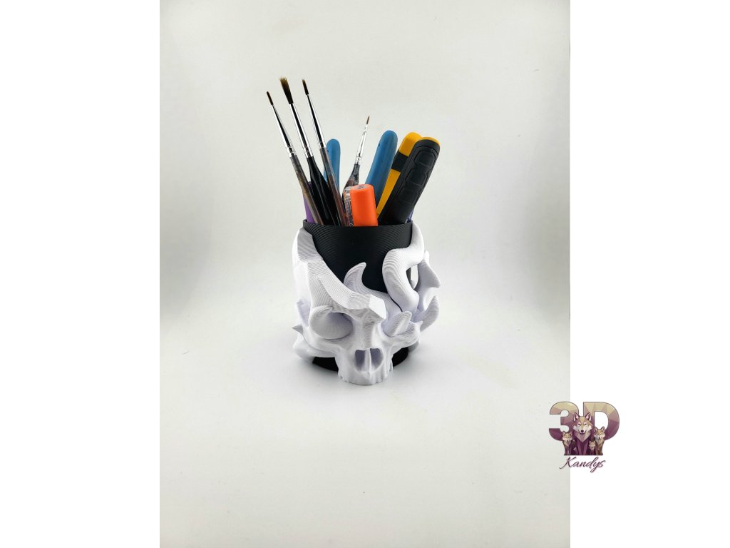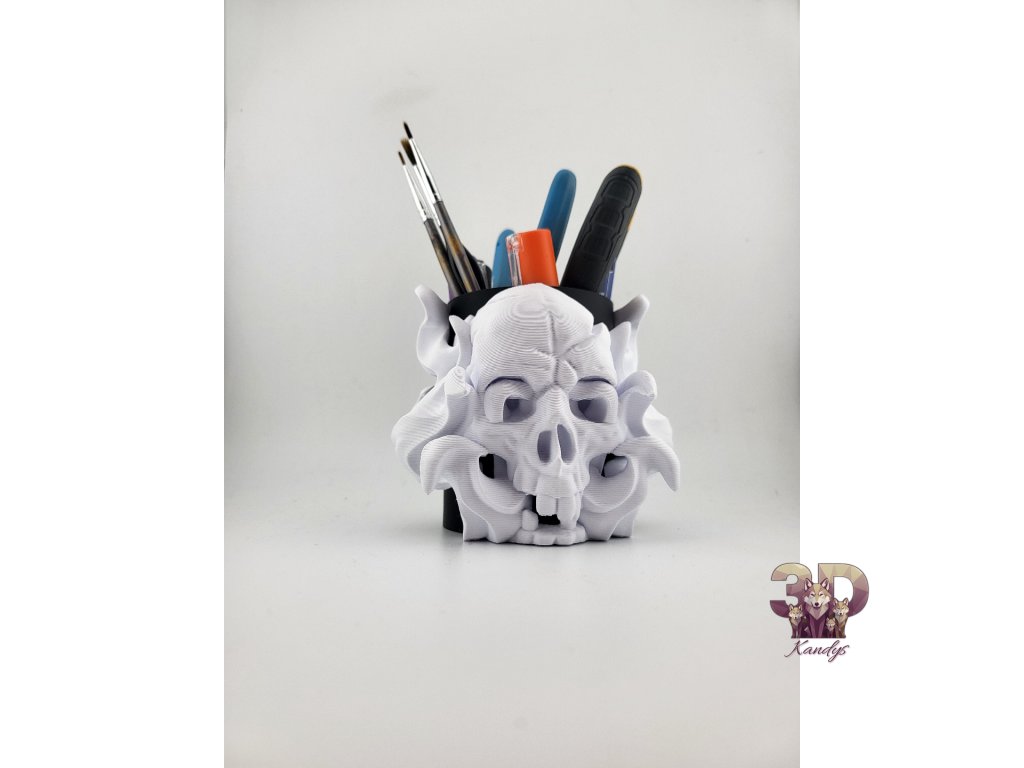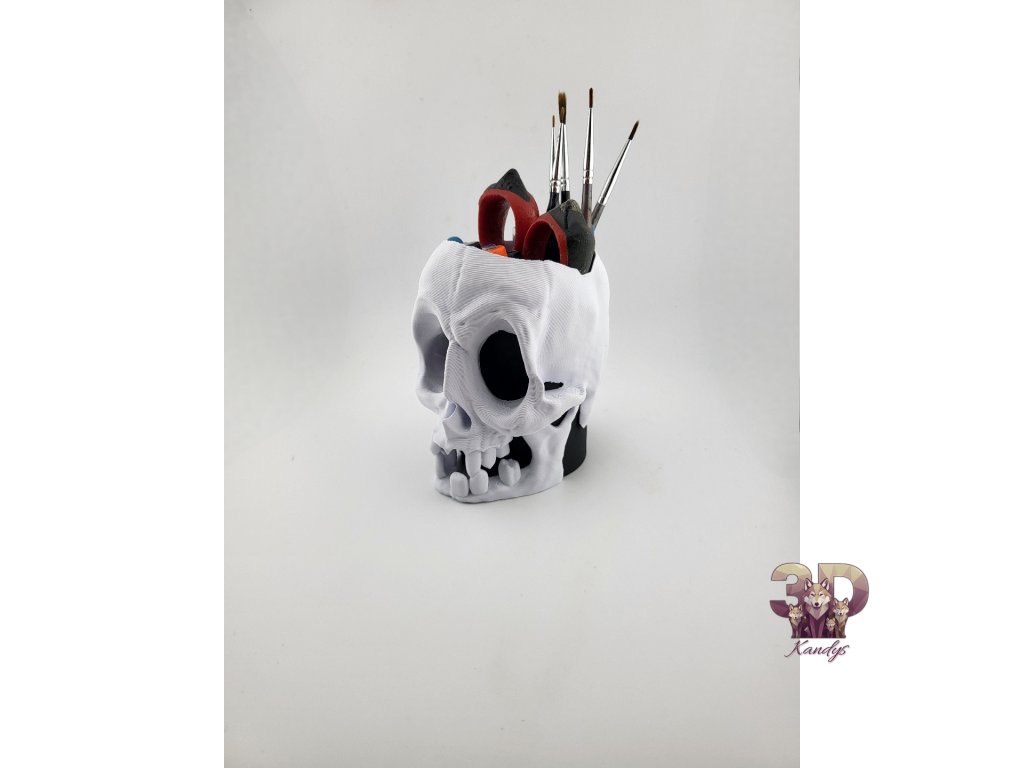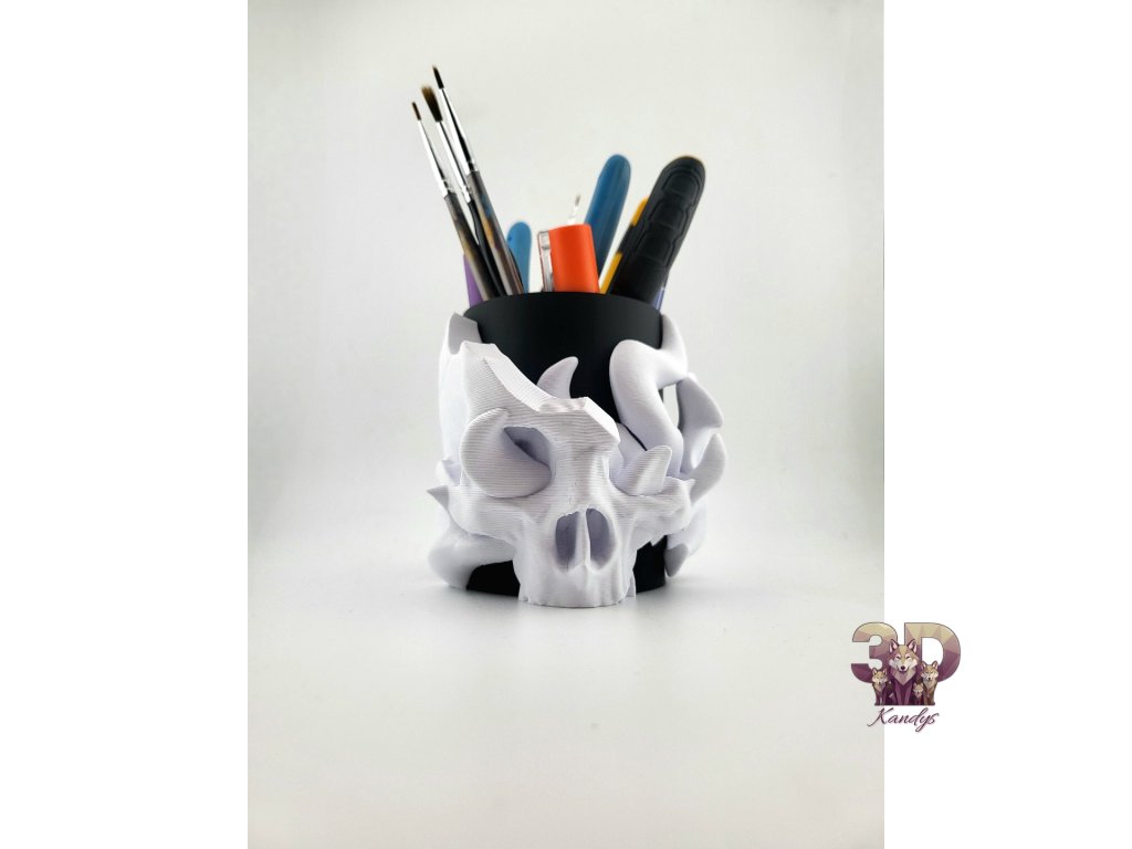 Ať už tě láká gotická temnota nebo minimalistická klasika – tyto lebky nejsou jen dekorací, ale praktickými držáky na pera, štětce či drobné nástroje.