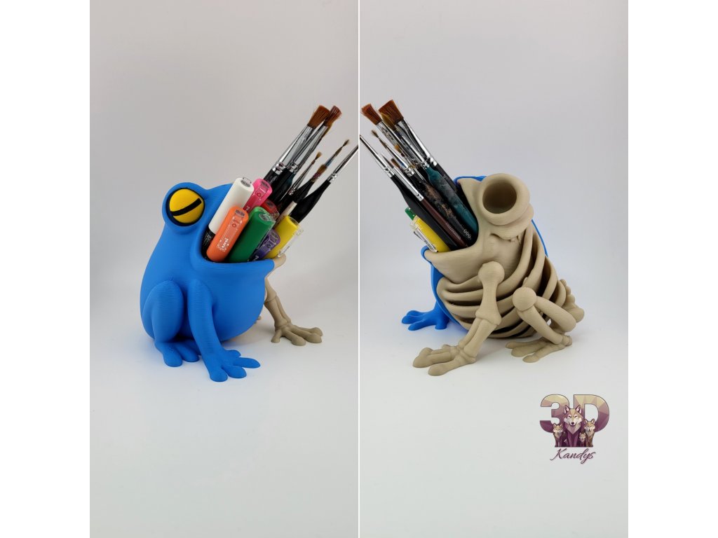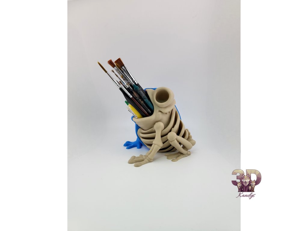 Představujeme ti Half Frog Skeleton – rozhodně netradiční, originální a přitom praktický držák na psací potřeby a štětce. Tento 3D organizér ve tvaru žáby s kostrou nejen udrží tvé nástroje pohromadě, ale také ozdobí tvůj pracovní stůl či ateliér. Už žádný chaos – tahle žába přináší pořádek a originální design v jednom.