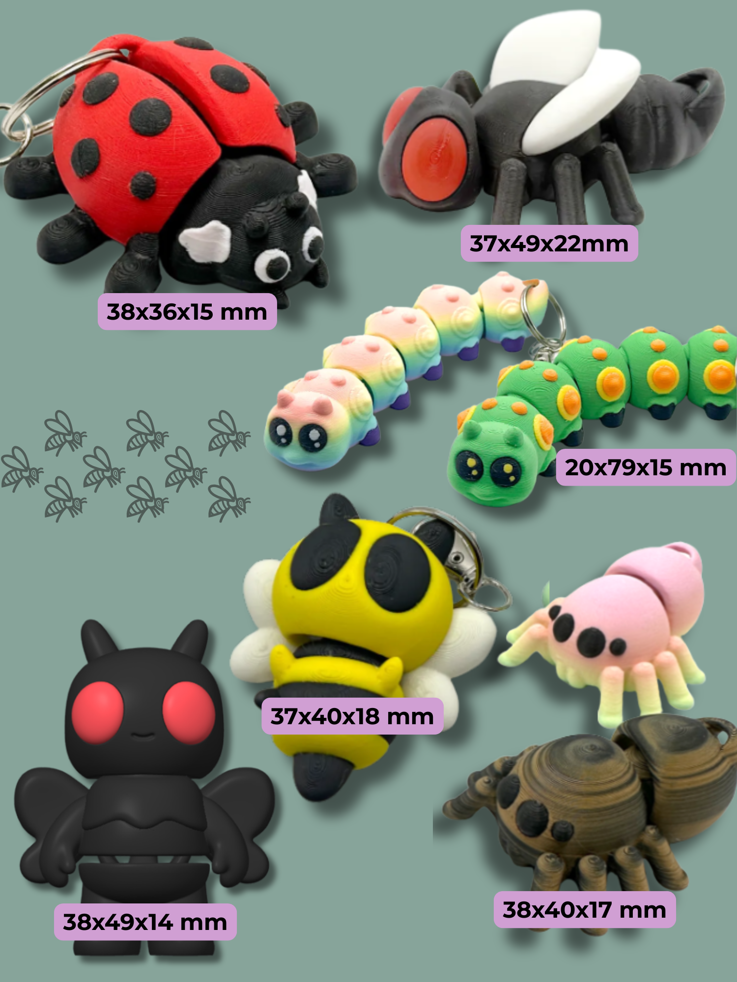 Každý přívěsek je lehký, odolný a má svou osobnost – ať už si vybereš jemnou berušku nebo drsného pavouka, bude to parťák, který tě nikdy neopustí.